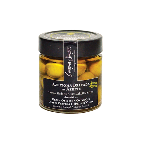 Oriundas das serras do Sotavento Algarvio a Azeitona Verde em azeite tem um sabor intenso. Produto regional de qualidade.